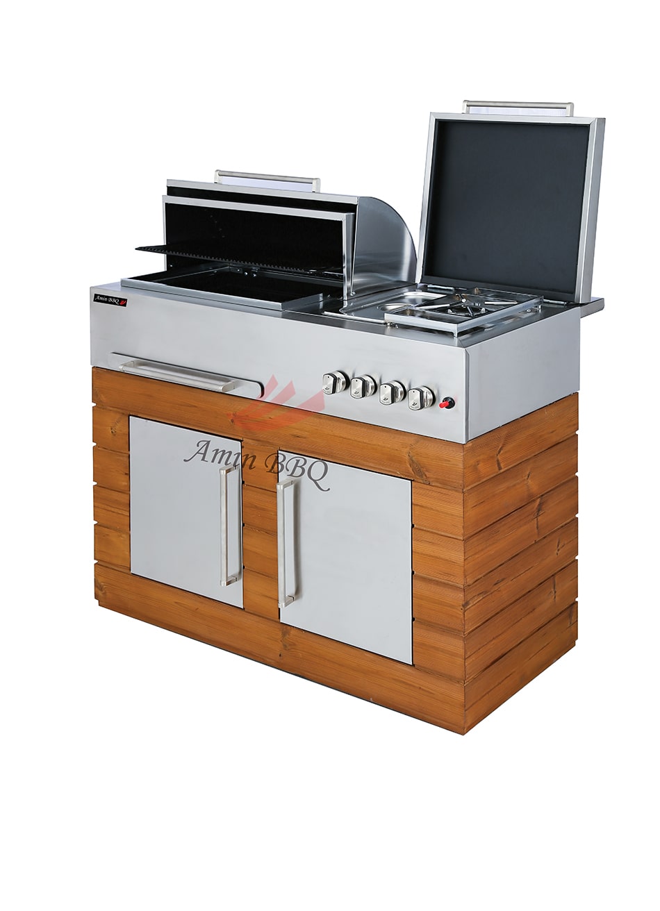 باربیکیو مدل AMINBBQ-SWRC-110 یک باربیکیو گازی با کابینت است که از استیل ضد زنگ ساخته شده و با کیفیت ساخت بالا و عملکرد پخت و پز عالی، تجربه ای لذت بخش از آشپزی در فضای باز را برای شما به ارمغان می آورد.